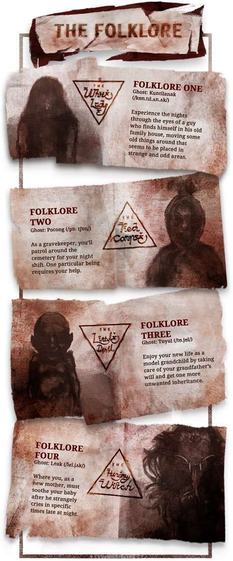 The game will become the first part of a four-parts story that focuses on Indonesian horror folklores. The first folklore will be titled White Lady, which is inspired from Indonesian ghost kuntilanak. While the other folklores released date have not been confirmed yet, it has already been announced that the other three folklores will be inspired by pocong, tuyul, and leak.