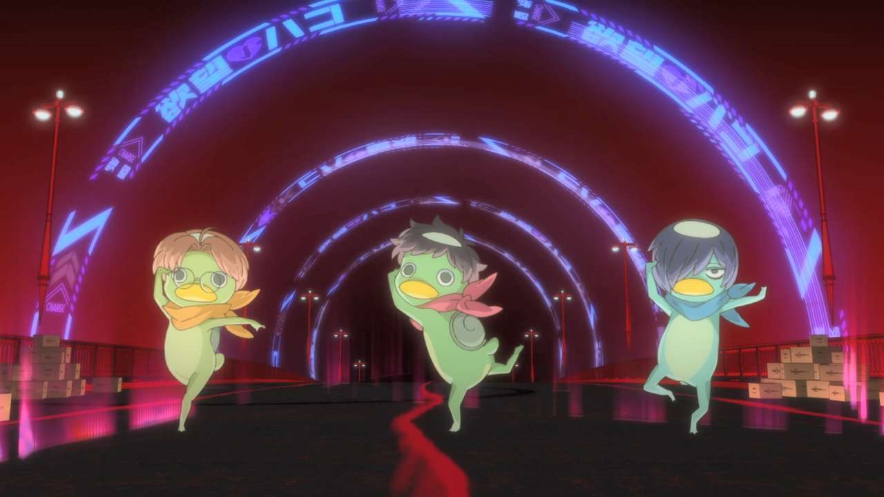 So how does Sarazanmai fare? Both better and worse depending on how you look at it. Those unfamiliar with the kappa lore are certainly going to be shocked at the show’s shirikodama extractions. But there’s a strong comedic sense to Sarazanmai that makes these scenes downright hilarious. Sarazanmai is a funny show, and the slick, bright visuals help offset the weirdness that might be off-putting to some viewers. Setting the show in real life Asakusa in Tokyo (mixed in with some creative liberties here and there) makes for a visually stunning show. Nowhere is this more evident than in the ending sequence, where the characters are juxtaposed against real life footage of the district. This might just be Ikuhara’s best-looking show yet.