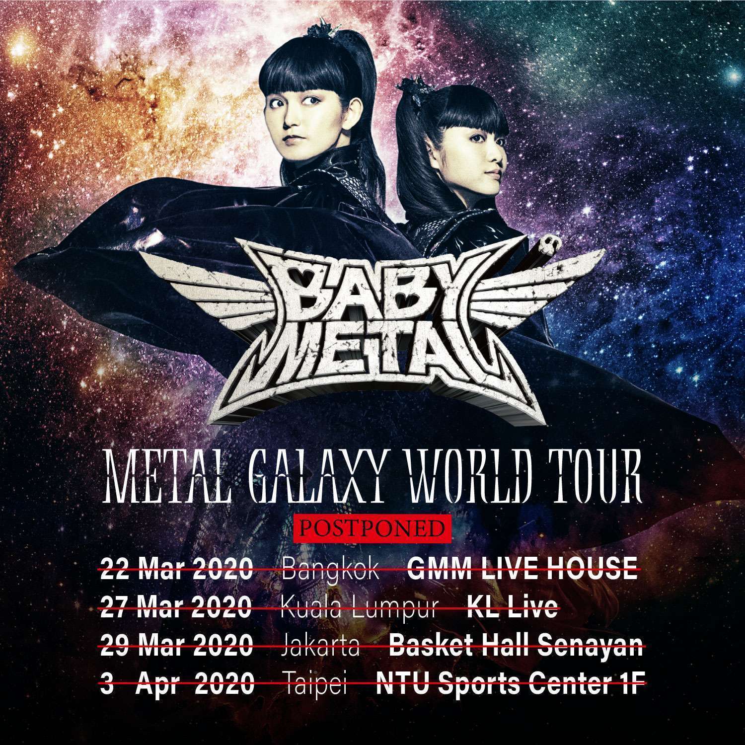 However, on March 4 2020, the official facebook account of BABYMETAL announced that “METAL GALAXY WORLD TOUR IN ASIA” that will be held in the four cities will be postponed until an undetermined time due to current health and travel concerns caused by the Novel Coronavirus (COVID-19). As a result, BABYMETAL management apologizes to the fans and promises to arrange refunding of the tickets.