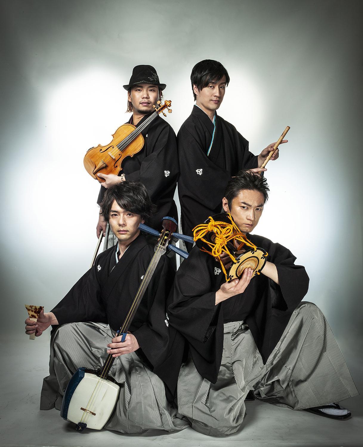 An old and new unit Ryoma quartet consisting of four people, a Japanese-Western eclectic fusion of the traditional Japanese instruments Tsugaru shamisen, Shinobue, drums, and violin that inherits Western traditions.