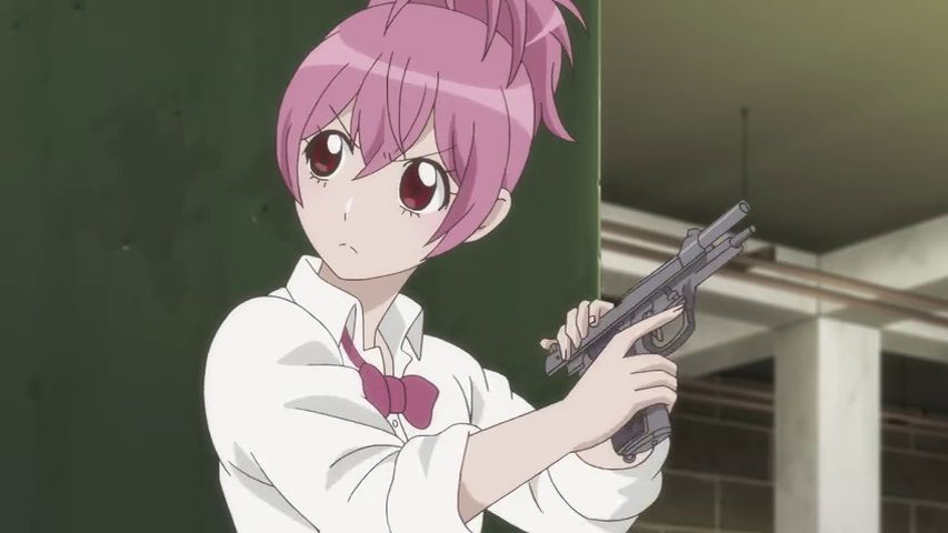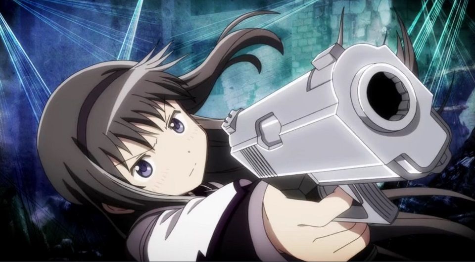 When I think about girls with guns, the first thing that comes to mind is the gunfight between Homura and Mami in Puella Magi Madoka Magica the Movie 3: Rebellion. It’s a beautiful dogfight between two magical girls with guns. Seriously, watch the movie. It’s an amazing scene that shows that Shaft isn’t just about weird poses and idiosyncratic edits. They are also capable of creating some amazing animation, and the Madoka series is one of them.