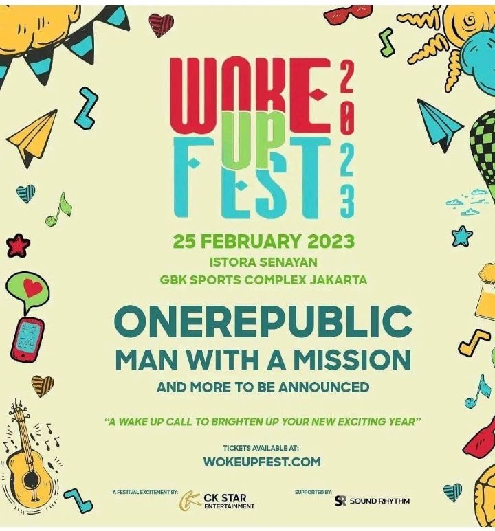 Woke Up Fest 2023 is slated to be held on 25 February 2023 at Istora Senayan, GBK Sports Complex, Jakarta. Pre-sale tickets can be purchased online starting from 1 October 2022. Prices start from RP. 700.000 for GA class tickets (standing) and Rp. 875.000 for indoor tickets (seating).