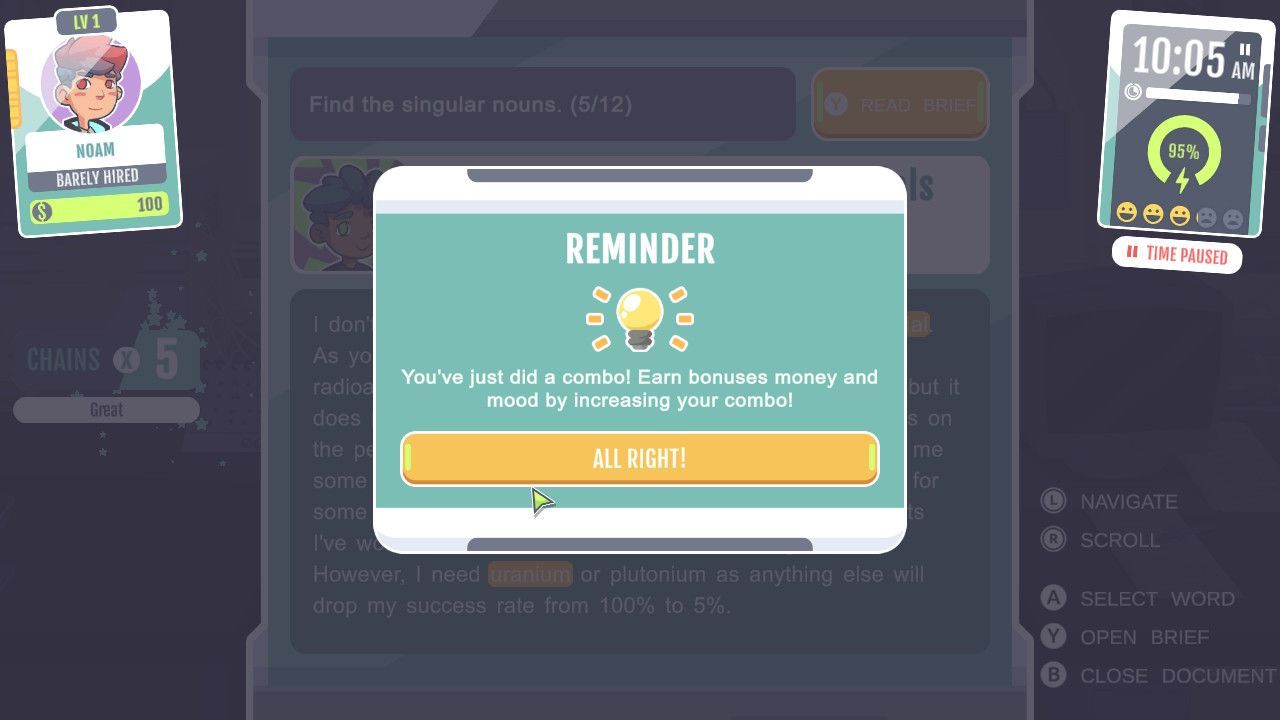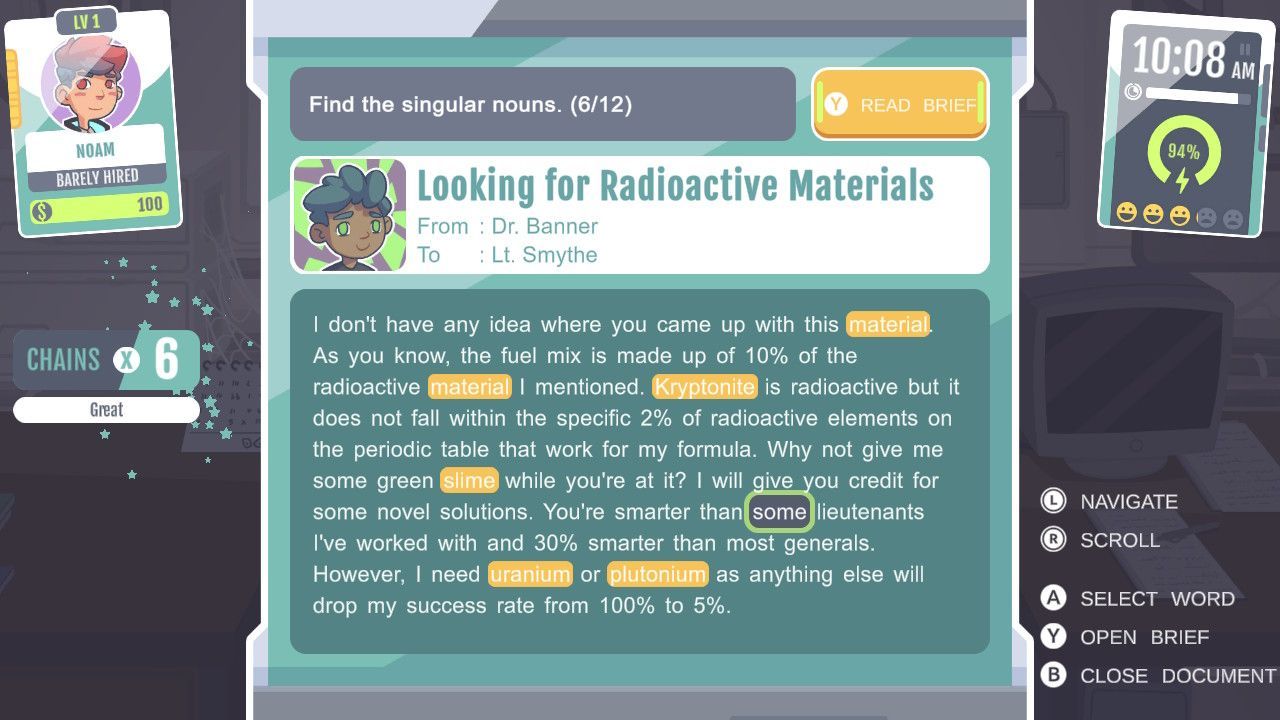 Use your grammar and management skills to work your way up from “Junior Passable Intern” to “Editor Extraordinaire.” Learn from eighty chapters of grammar and play with more than 800 documents.
