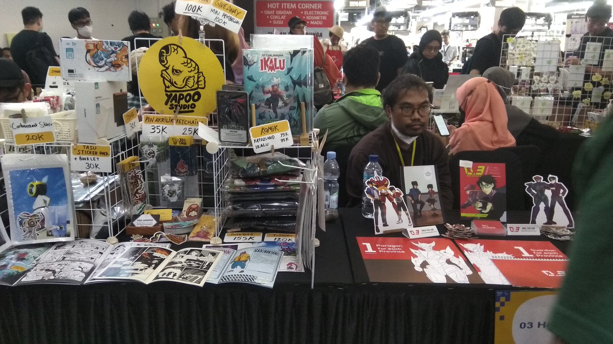 In PesKom Bandung, comics were not solely the only thing being sold. Other than merchandise such as stickers, posters, and postcards, some of the booths also had aromatic candles, plushies, wayang (shadow puppet), figures, and even a backdrop to take photos with their comic character.