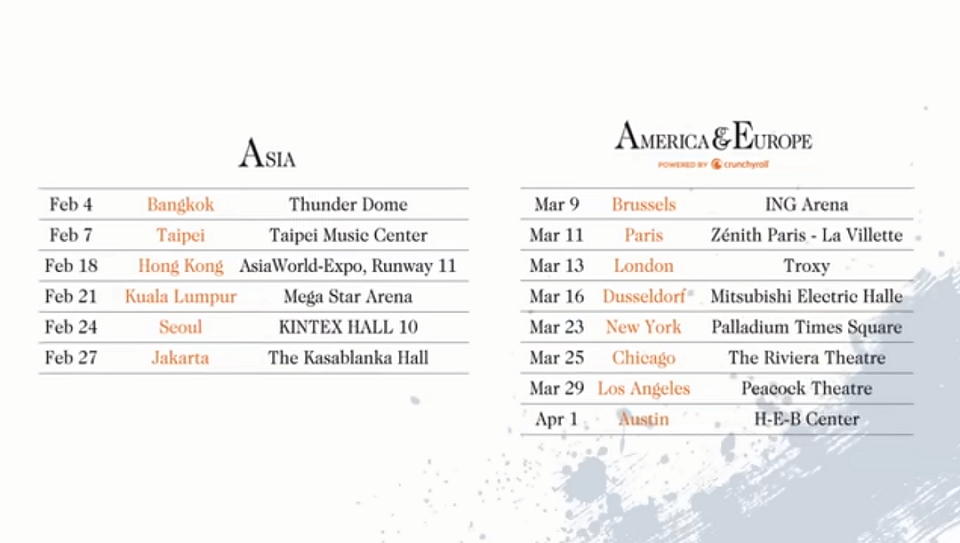 The Europe and America tours will start from 9 March to 1 April 2024. The Europe tour will include four cities: Brussels, Paris, London, and Dusseldorf. The America tour will also include four cities: New York, Chicago, Los Angeles, and Austin.