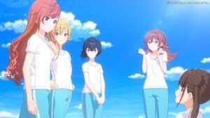 There is a sequence in the anime’s opening where they swap each character’s models while they do the same dance move in the center position. I get that this is supposed to show the idea that “every girl is special”, as it is one of the main themes throughout Shiny Colors‘ story, but due to the similar body types of the model and how all of the girls wear the same costume, it just looks like them swapping heads on the same body. It felt lifeless.