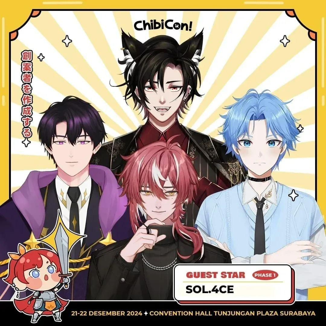 SOL.4CE is a VTuber sub-group from AKA Virtual that was revealed in November 2023. The sub-group consisted of Harris Caine, Souta Izumi, Mikazuki Arion, and Gingitsune Gehenna. Prior to the Chibicon Surabaya, Harris Caine and Mikazuki Arion were also the guest stars for the Chibicon Jakarta 2024 event, which was also guest-starred by LadyBeard.