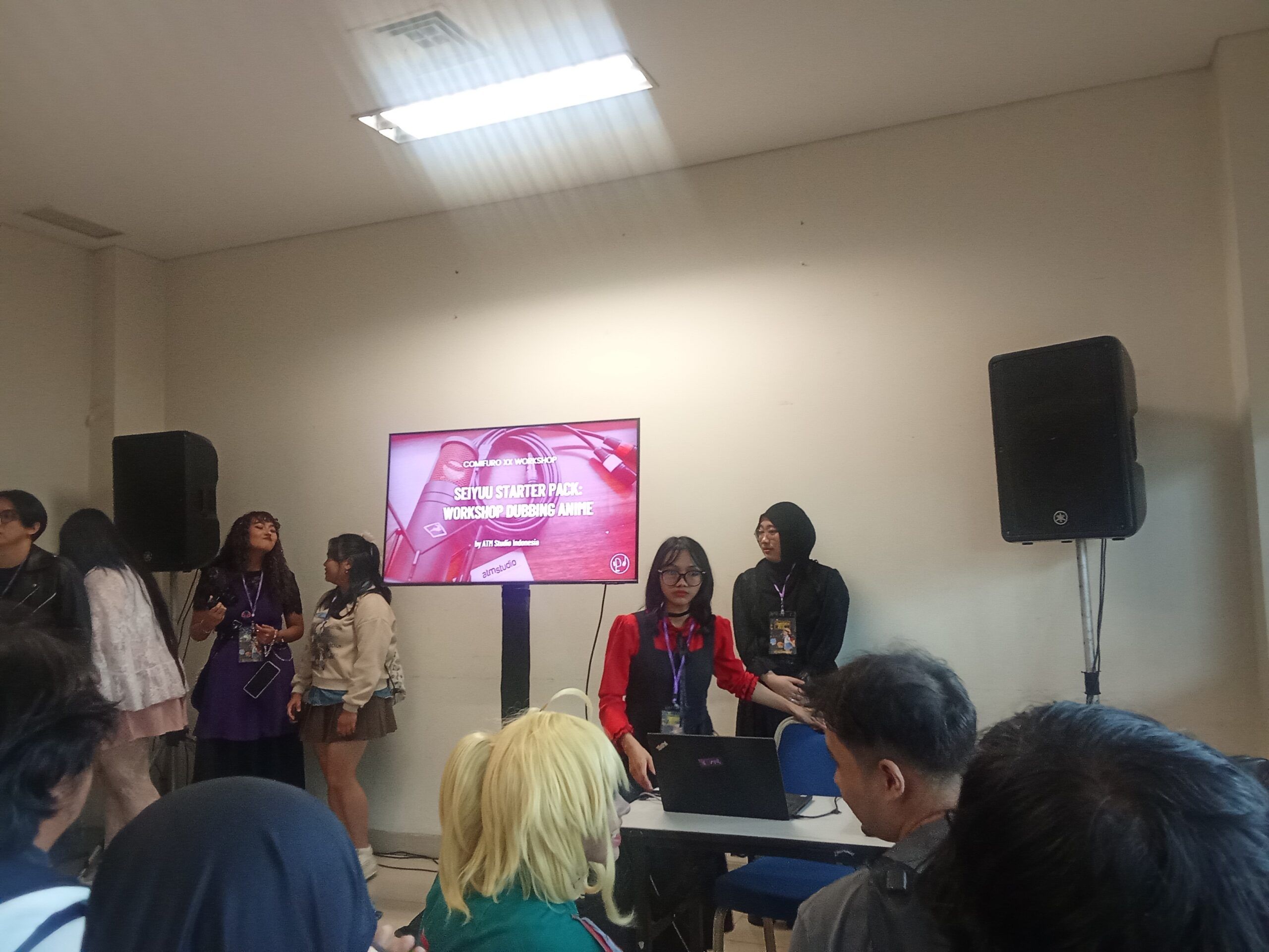 During the Comic Frontier (Comifuro) XX event, held on 24–25 May 2025 at ICE BSD, Tangerang, we had the opportunity to participate in a dubbing workshop hosted by ATM Studio, which was held at Panel Room 7. The workshop featured several Indonesian voice actors as speakers. Among the speakers were Emir Bayhaqi, Purin, Anissa Anggraeni, Viola Athaya Andriana, and Ramawajdi Kanishka.