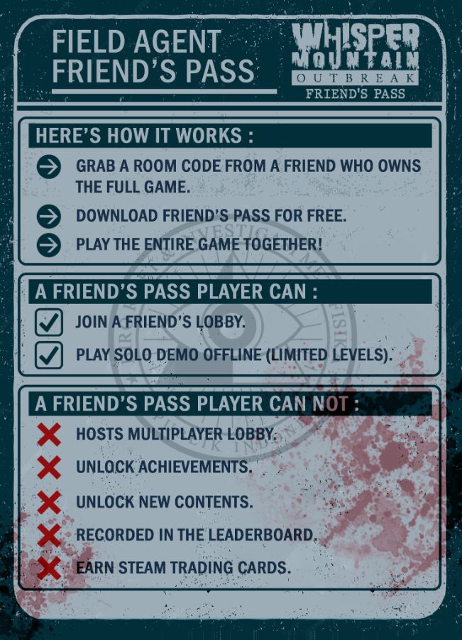 With Friend’s Pass, players who do not own Whisper Mountain Outbreak can join a friend’s lobby and experience the game in full co-op mode. They can also try out a limited version of the solo demo offline. This initiative is designed to make multiplayer more accessible and encourage players to experience the game’s cooperative elements.