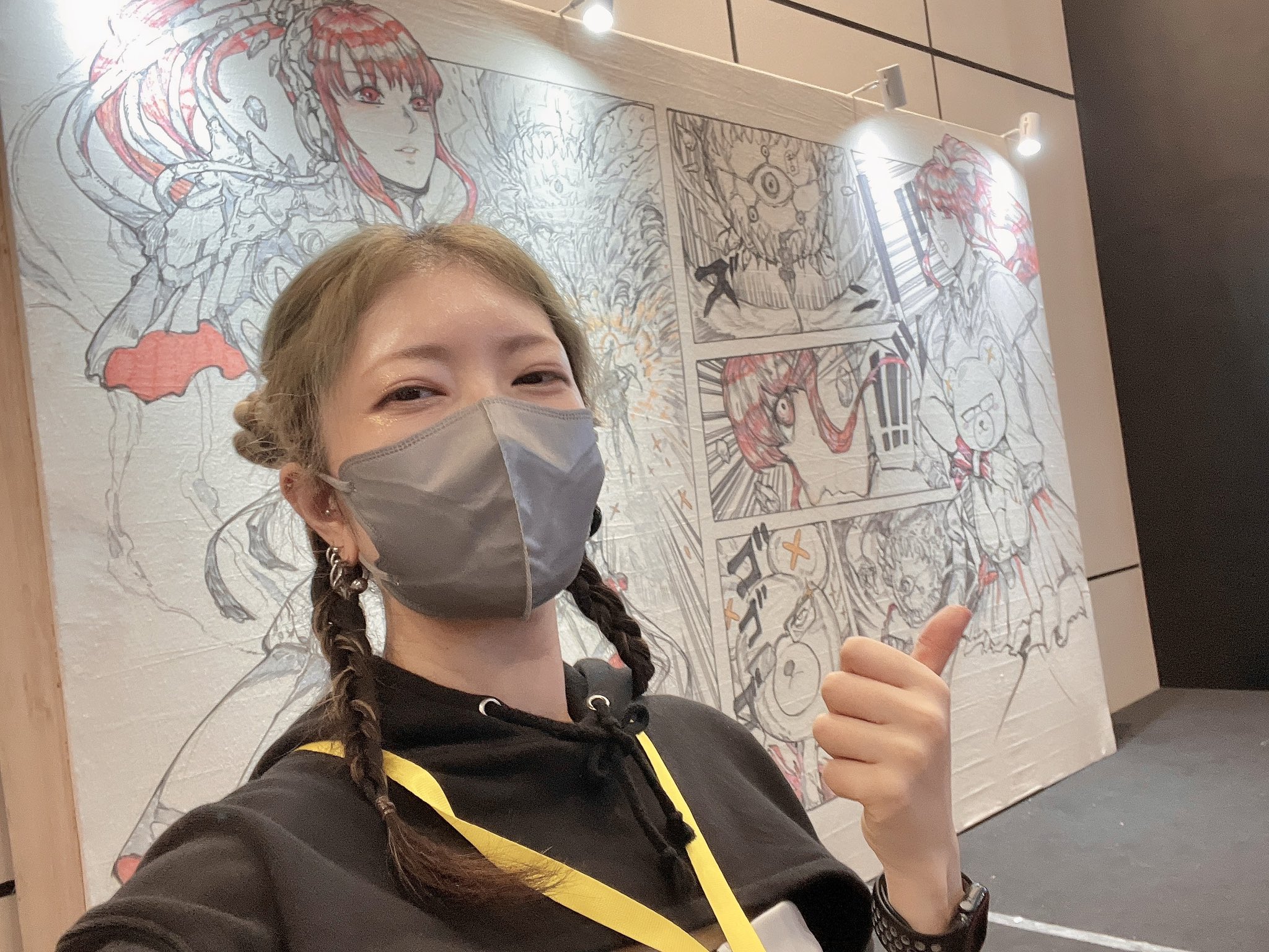 KN: Please correct me if I’m wrong, but I believe your debut as a manga live painter happened quite instantaneously at Design Festa. You hadn’t done large-scale wall manga before that. What inspired you to take that leap into manga live painting, especially since it’s such a rare and unique path?