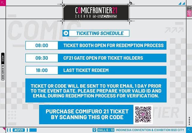 The biggest creator market event in Indonesia, Comic Frontier (Comifuro), will be held again on 15 to 16 November 2025 at Indonesia Convention Exhibition (ICE) BSD City, South Tangerang. Dubbed Comifuro 21, this edition of Comifuro will be attended by more than 1,300 circles from Indonesia and overseas.