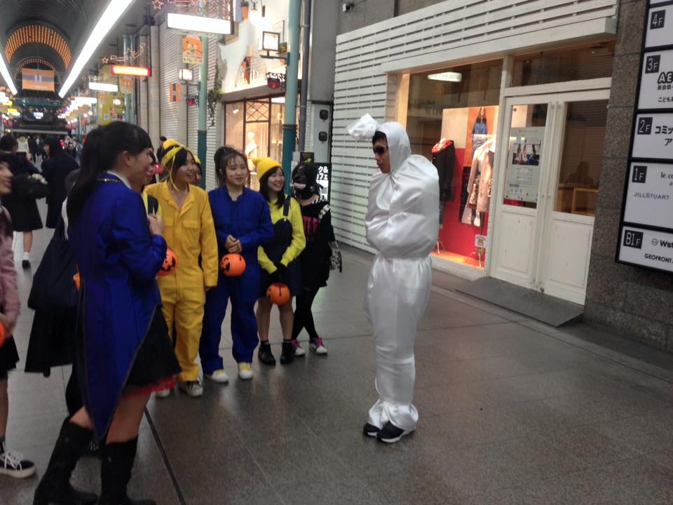 Gilang confessed that he actually did not plan to dress up as pocong and did not prepare anything for Halloween this year. He said that “the idea to dress up as pocong came to me spontaneously. I thought to myself that I should try it because the costume is easy and I can introduce ghosts from Indonesia here in Japan.”