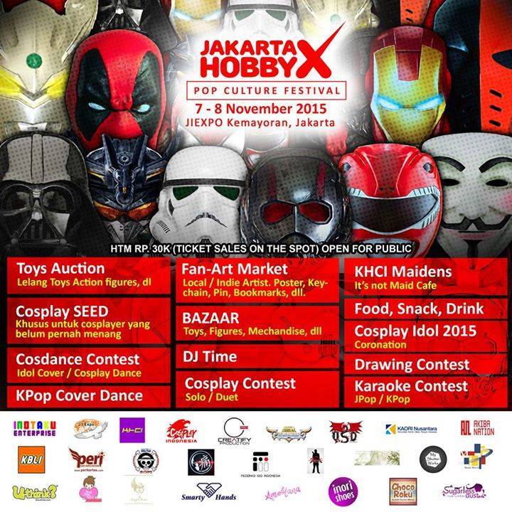 Jakarta Hobby X, is an event that aims to be a gathering for all those various pop culture hobbies that have been growing in the country. The “X” on the name refers to something mysterious or extraordinary, such as in X-Men, or X-Files. This event is organized by Inotaku Enterprise, KHCI (Indonesian Hobby and Cosplay Community) and KCI (Indonesian Cosplay Community).