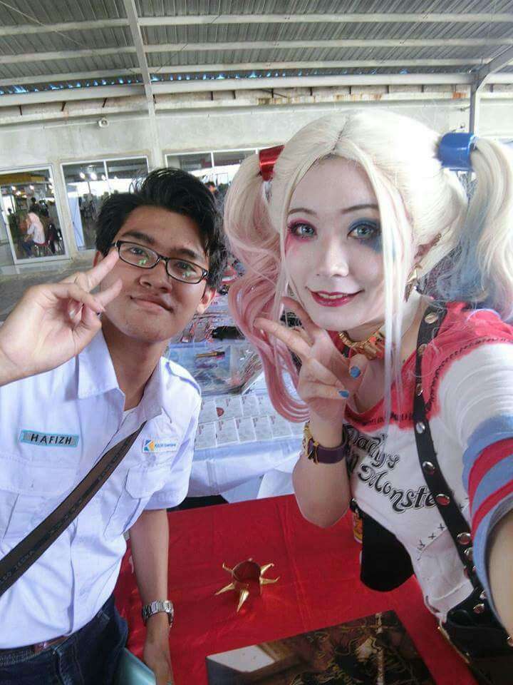 Near the entrance, DD Tenka and Onnies continued their signing and photo session. After cosplaying as NieR:Automata characters in the first day, they used different costumes in the second day. DD Tenka cosplayed as Viktor from the anime series Yuri on Ice, while Onnies cosplayed as Harley Quinn from DC Comics.