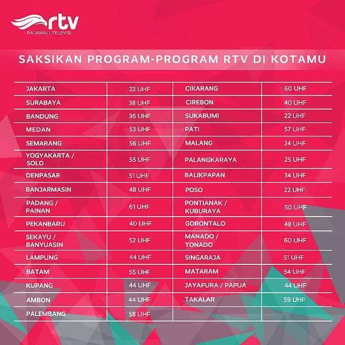 RTV can be seen in Indonesia through the following frequencies, or through cable TV network USeeTV.