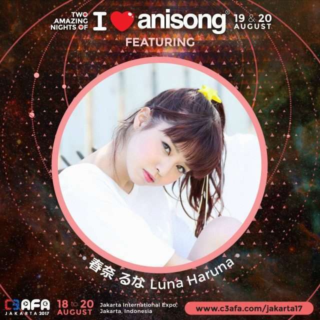The last singer to be announced is Luna Haruna, a popular singer who performed theme songs for many popular shows like Fate/Zero, Monogatari Season 2, Saenai Heroine no Sodatekata, and Sword Art Online. Besides these guests, more artists will be announced at later time on C3 AFA social media accounts.