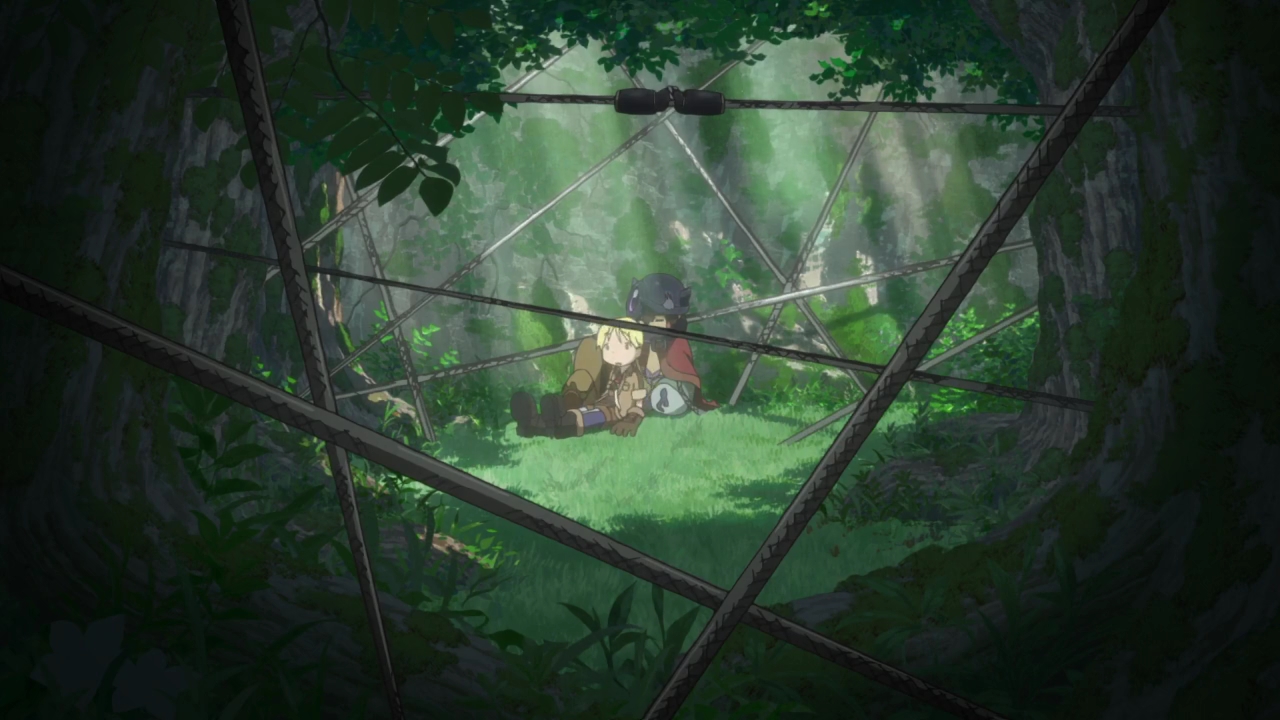 Episode four opens with what I think is a crystallization of the previous three episodes. Well, actually only concerning one thing, but it’s still a nice one: Reg. We can see how the journey impacts both main characters, but Reg especially. We always see Reg being swept away by Nat, Siggy or Riko, always seemed to be passive all the time. Well, now he’s not. The conviction we see in him from the last episode is put to the most effect in episode four’s early scene. As Riko and Reg slept sheltered by the bushes, we see Reg’s arms are surrounding them, making some kind of a net. Yes, Reg is now taking the initiative in the action in the story. A nice, development in his personality. And we continuously see him keeping his wits, being cautious all the time. Often he monologues Siggy’s warning about the Abyss’ dangers or his promise to keep Riko safe.