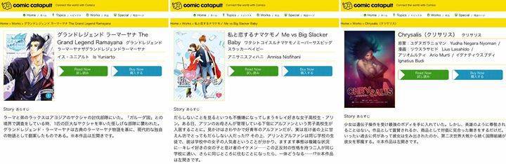 Comic magazine re:ON Comics announced via Facebook that three of their comics are now available in Japanese through the digital comic publisher Comic Catapult. Comic catapult is an online distribution platform focused on showcasing the best of international comics to Japanese readers. It is owned by Digital Catapult which provides services such as e-book and paperback production, distribution, sales, and, SOKUYOMI, an online shop that boasts a line-up of over 50 publishers and content holders that provide content for a multitude of adoring fans. The comics published are The Grand Legend Ramayana, Me VS Big Slacker Baby, and Chrysalis.