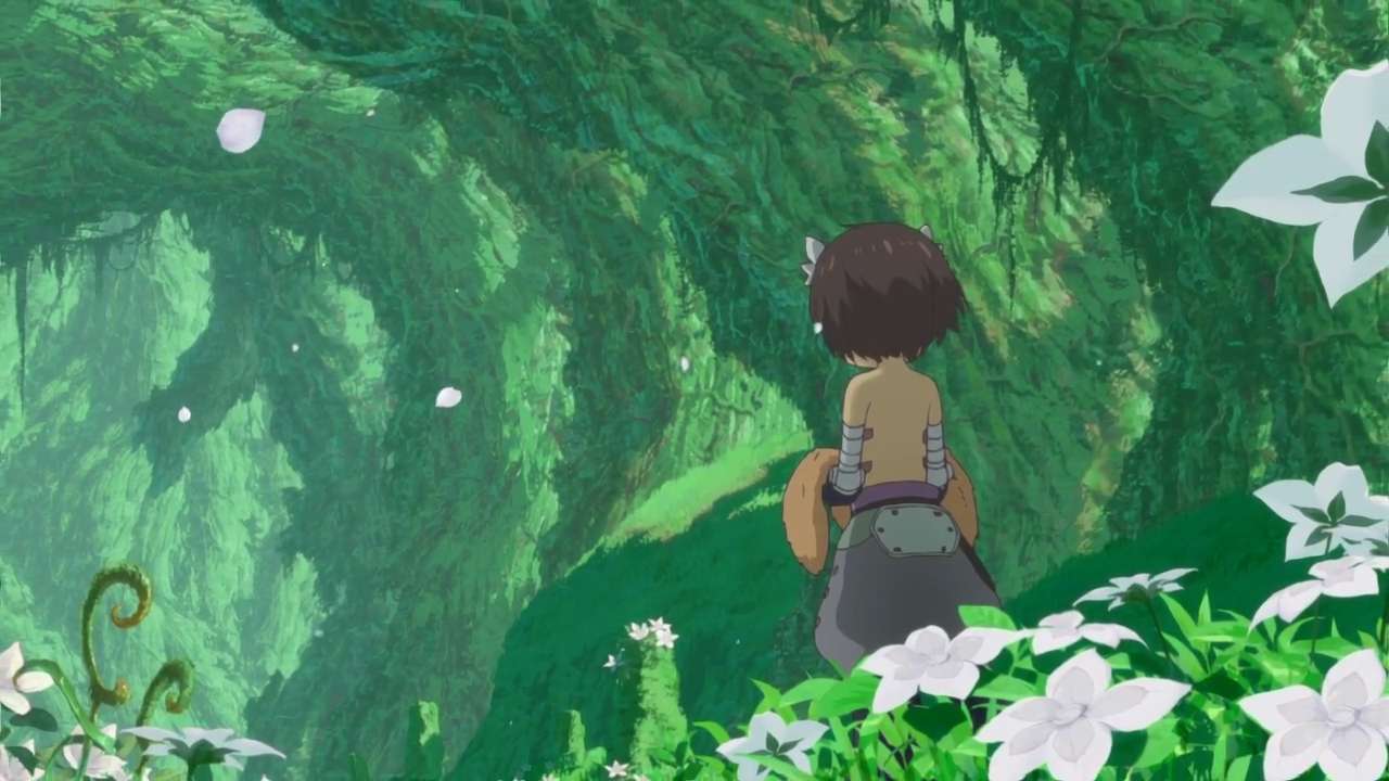 Continuing from the last episode, Reg took Riko to the Nanachi’s hideout where they began to patch up Riko. Reg was then introduced to Mitty, a creature living with Nanachi, who soon revealed that both of them were Hollows: cave raiders who ascended from the Sixth Layer and lost their humanity as a result of the Curse. She sent Reg off to fetch ingredients to heal Riko and, as he was out, Nanachi seemed to recognize Lyza’s white whistle. After fetching the ingredients, Reg was sent to clean Riko’s blood-stained clothes at a riverbank behind her hideout. There, a memory resurfaced of him standing by a gravestone with Lyza’s Blaze Reap on the ground. While Riko was left alone, Mitty began to eye her and mysteriously mutter something.