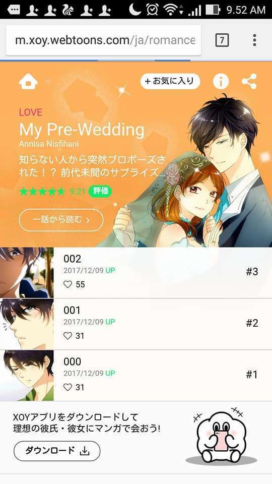 Indonesian comic artist Annisa Nisfihani revealed on her Facebook account that her comic My Pre-wedding has now been available in Webtoon Japan with Japanese translation.