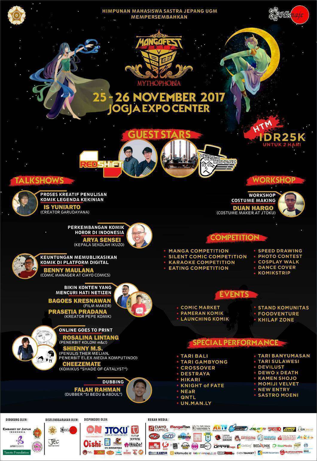 Salah satu acara Jejepangan terbesar di Yogyakarta, kembali hadir! Buat kalian penggemar Manga, Anime, Cosplay dan budaya Jepang lainnya, wajib hukumnya untuk hadir ke MANGAFEST 2017 yang deselenggarakan pada,