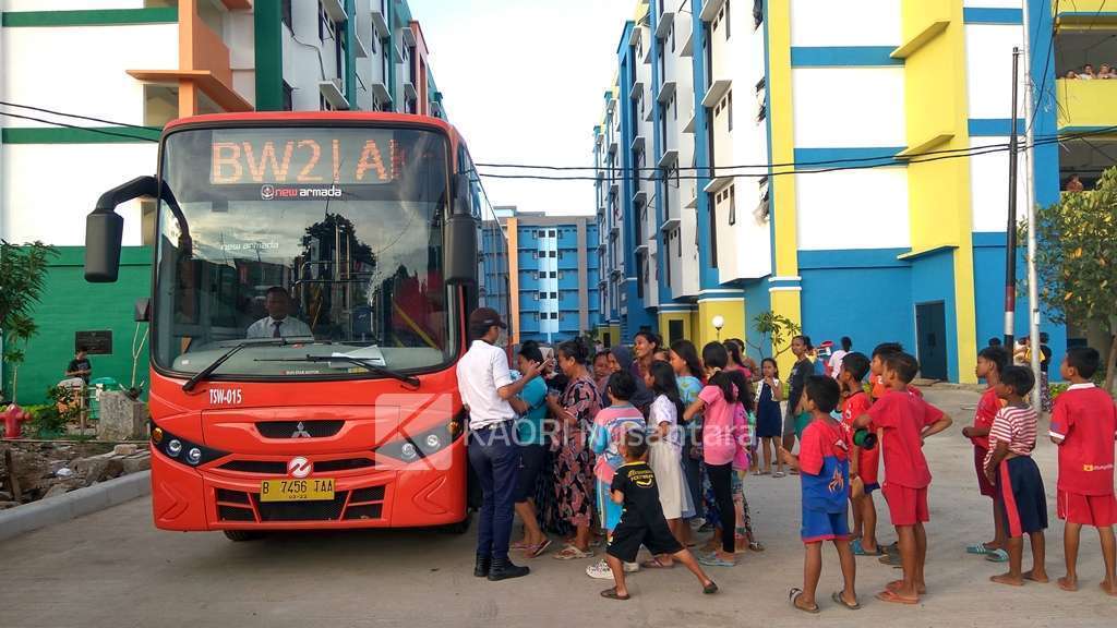 Sekitar pukul 16:59, bus pun tiba di Rusun Jatinegara Kaum. Sesaat setelah bus masuk ke area rusun, sudah banyak anak-anak yang tak sabar ingin mencoba bus ini. Antusiasme warga rusun pun tak terbendung untuk mencoba layanan bus ini. Terbukti, bus ini pun langsung dipenuhi oleh anak-anak dan ibu-ibu warga Rusun Jatiengara Kaum. Setelah sempat bertanya kepada petugas onboard, rute Rusun Jatinegara Kaum – Terminal Pulogadung memang baru beroperasi pada hari itu. Akhirnya, bus tersebut berangkat dari Rusun Jatinegara Kaum dan melanjutkan layanannya ke Terminal Pulogadung pada pukul 17:12.