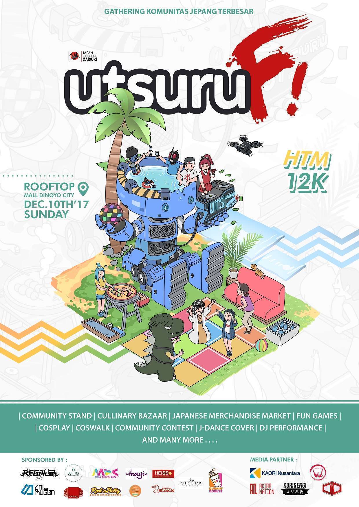 Utsuru F! merupakan gelaran keempat dari rangkaian event Utsuru, yang merupakan event gathering terbesar komunitas berbasis pop culture Jepang terbesar di Jawa Timur. Konsep yang menjadi titik fokus event Utsuru adalah menjadikan komunitas menjadi pusat perhatian dan eksposur. Komunitas yang berpartisipasi dalam booth komunitas diwajibkan untuk membuat suatu projek yang juga akan menjadi daya tarik, baik bagi event maupun bagi booth komunitas itu sendiri. Penghargaan tertinggi yang diberikan adalah Community of The Year yang ditentukan oleh voting pengunjung.