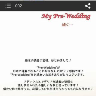 My Pre-wedding sendiri dapat dibaca melalui Webtoon pada tautan berikut ini. Adapun rencananya komik ini akan hadir dalam bentuk komik cetak.