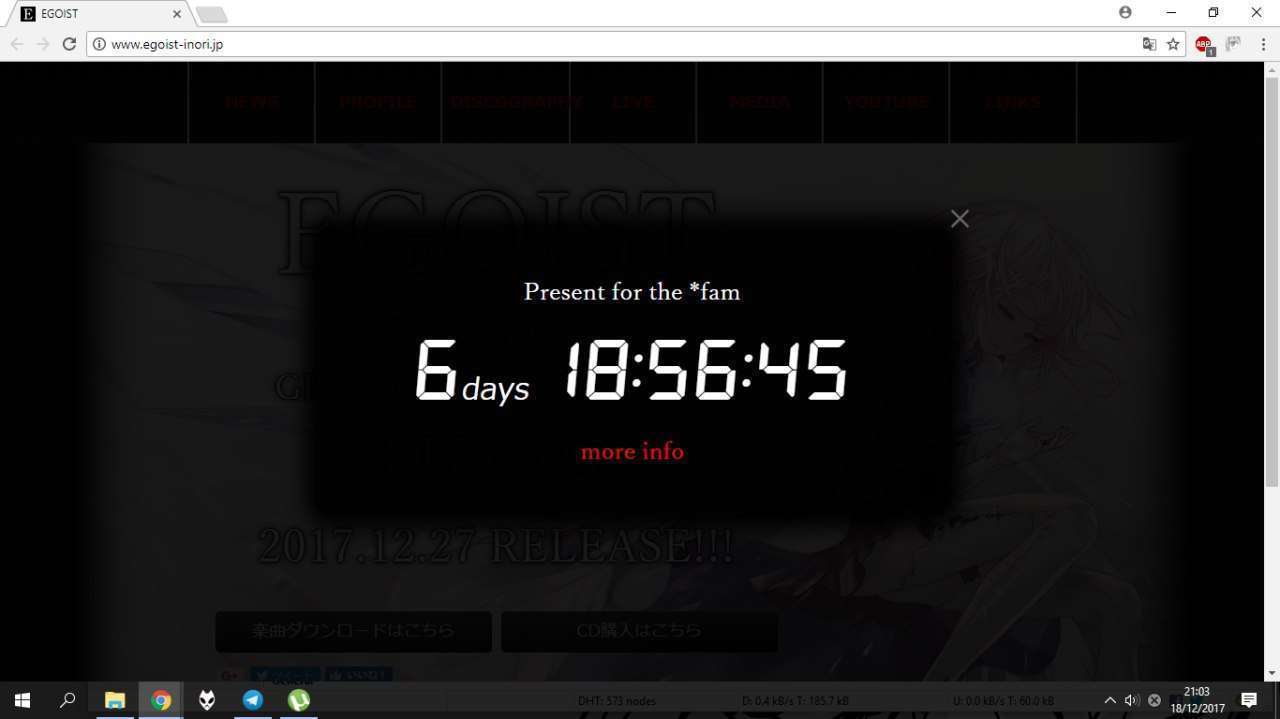 Saat tautan situs resmi EGOIST tersebut dibuka, rupanya muncul sebuah hitung mundur ‘misterius’ lagi. Hitung mundur tersebut dihitung akan habis dan jatuh pada hari natal, 25 Desember 2017 pukul 1800 JST (1600 WIB). Kembali terdapat tulisan “Present for the *fam” seperti dalam twit EGOIST tadi, dengan sebuah tautan bertuliskan “more info” yang merujuk ke akun twitter EGOIST.