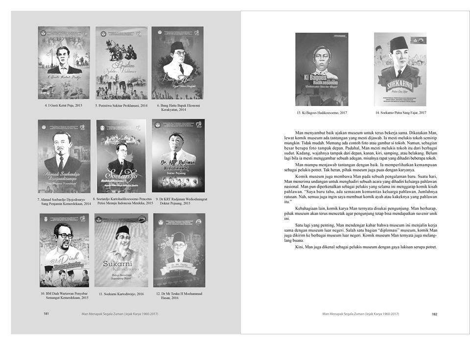 Beberapa komik karya MAN yang dituturkan di buku ini, di antaranya adalah serial Mandala, komikalisasi puisi Hujan Bulan Juni, sampai karyanya di beberapa museum Jakarta, dan masih banyak lagi.