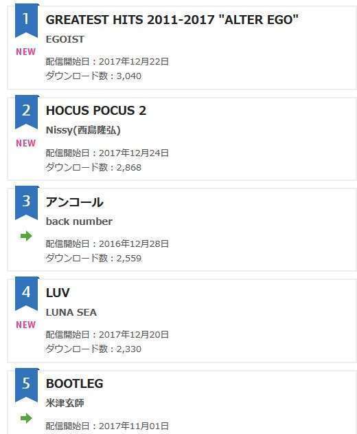 CDは本日発売となります!https://t.co/xe3vXJnLLT#EGOIST #BESTALBUM #ALTER_EGO #Oricon #オリコン— EGOIST staff (@EGOIST_2039) December 27, 2017