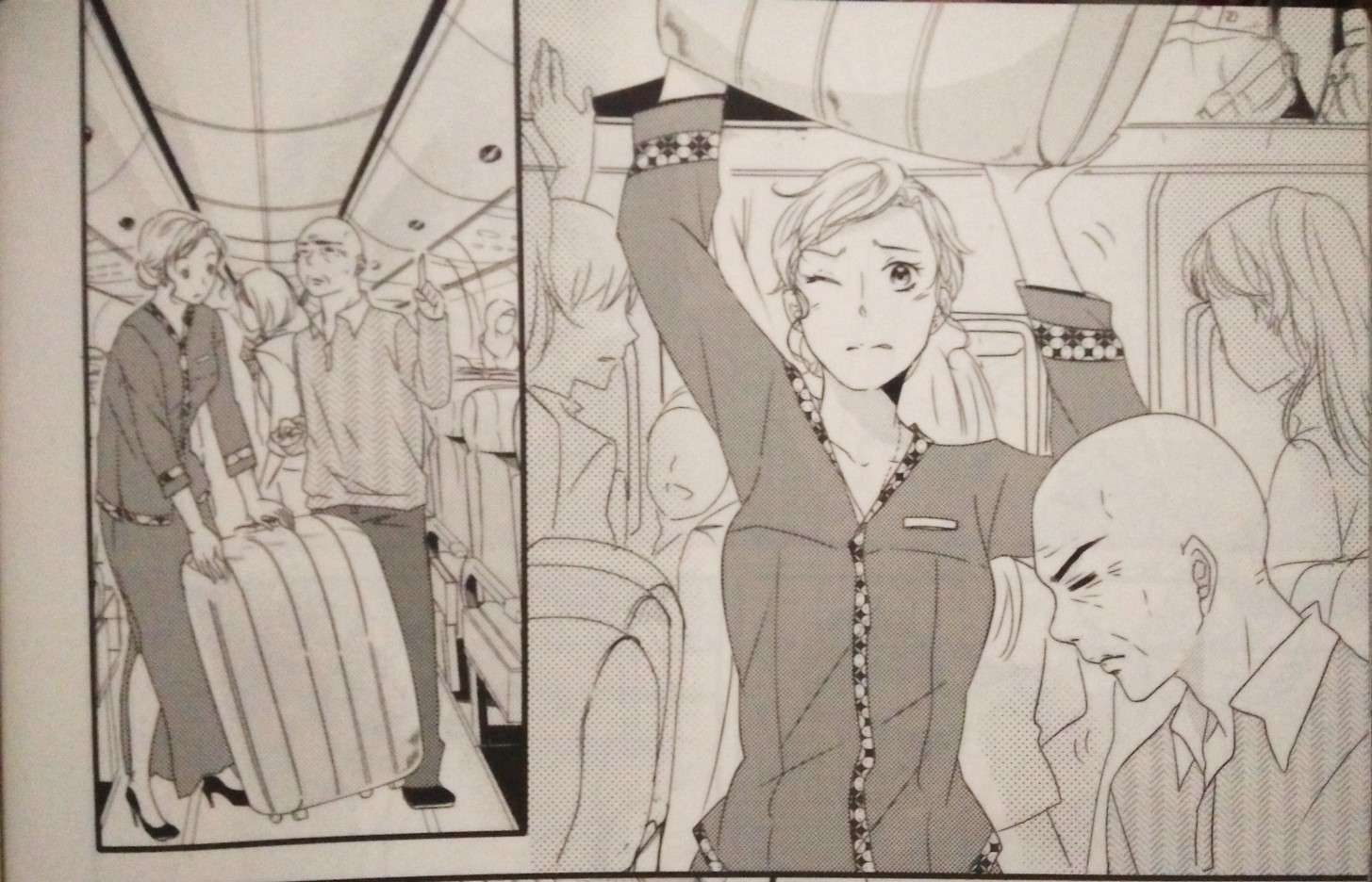 Komik one shot pertama di edisi ini adalah sebuat silent comic atau komik yang dituturkan tanpa dialog. Menceritakan pertemuan antara antara seorangg pramugari dengan penumpang yang berlanjut menjadi lebih dari sekedar kebetulan. Alurnya cukup mudah dipahami dan tidak membingungkan walaupun tanpa dialog, dan bumbu ekspresi chibi ikut menambah semarak warna perasaan karakter yang digambarkan.