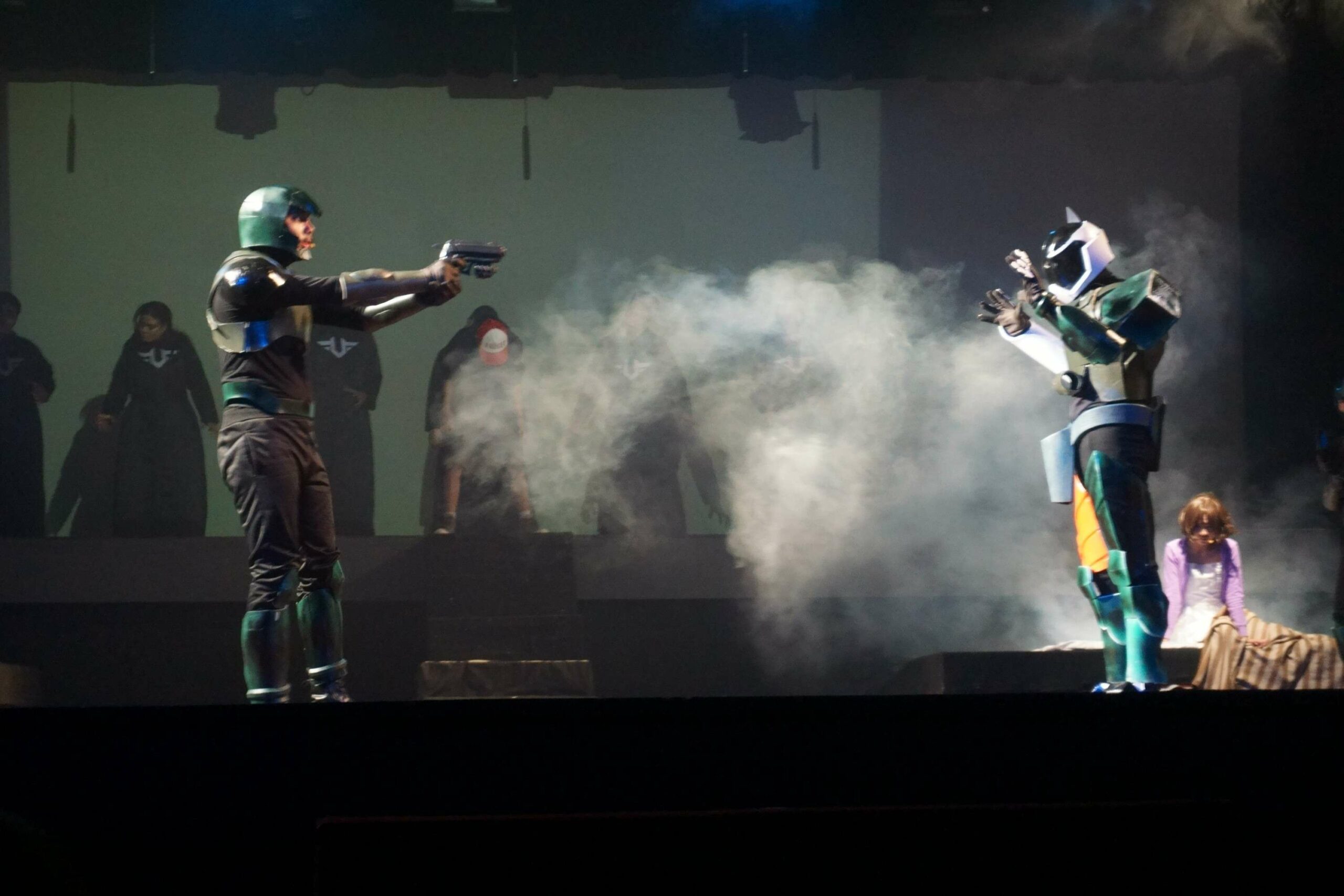 Selain itu juga, turut ditampilkan beberapa adegan aksi dalam komik ini. Suatu hal yang menurut penulis harus mendapatkan apresiasi, dikarenakan menghadirkan adegan aksi di atas panggung secara live bukanlah hal yang mudah. Bahkan dalam beberapa adegan, penulis melihat beberapa pemeran melakukan aksi flip saat menunjukan mereka terjatuh. Sebagai seorang yang pernah belajar sedikit teknik stuntman, penulis mengakui hal tersebut bukan merupakan hal yang mudah dilakukan. Koreografi pertarungan yang dihadirkan pun cukup menarik meskipun masih agak sedikit lambat.