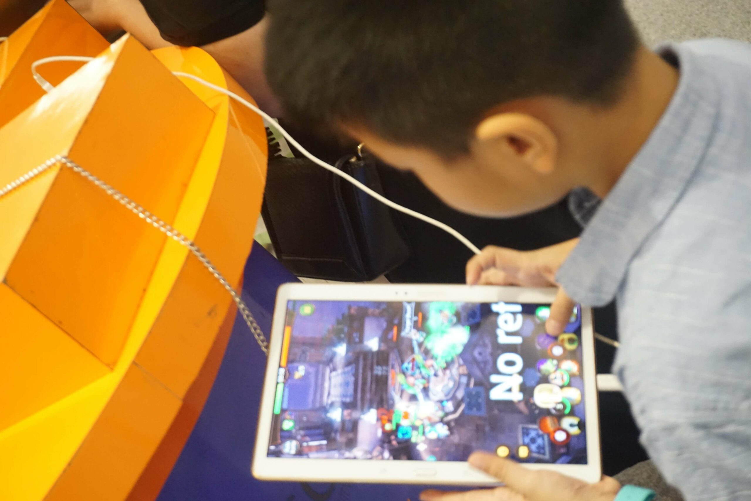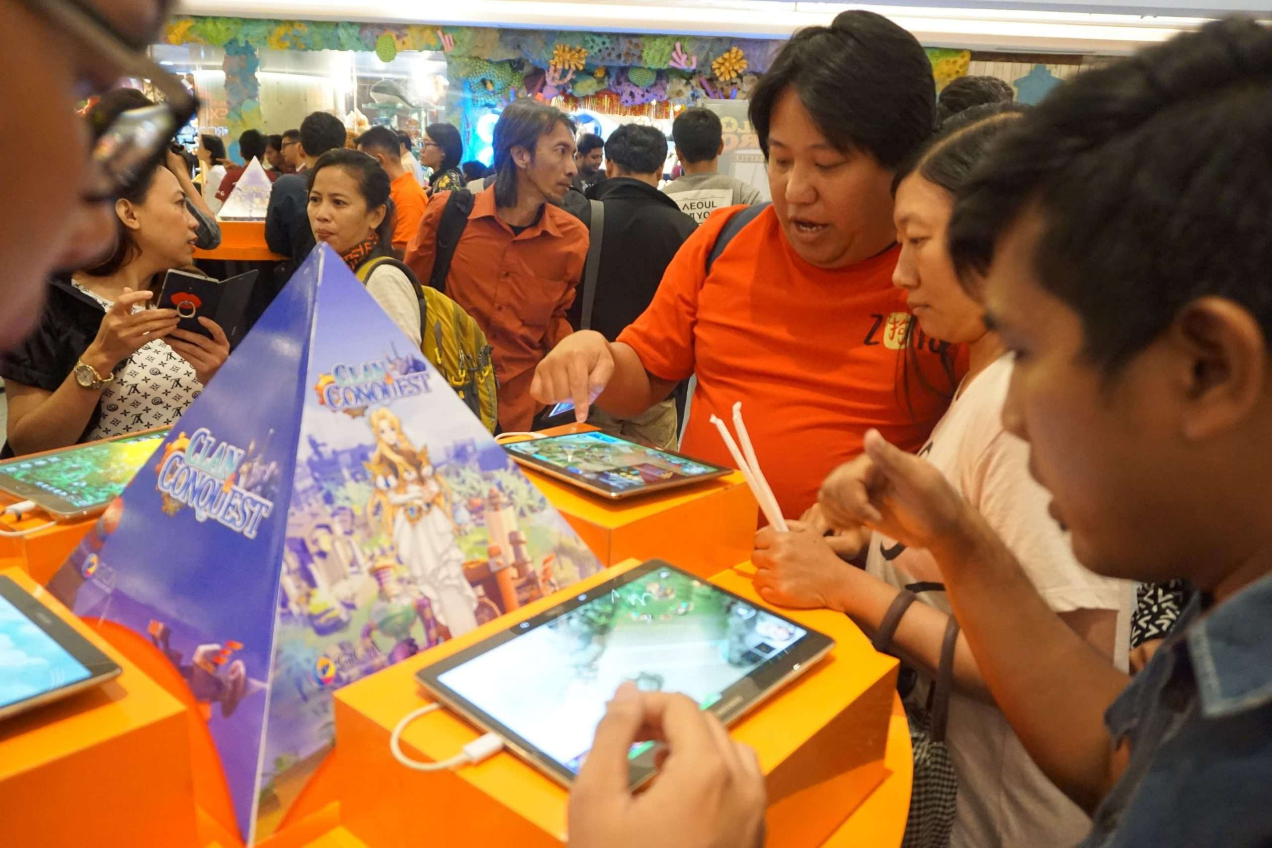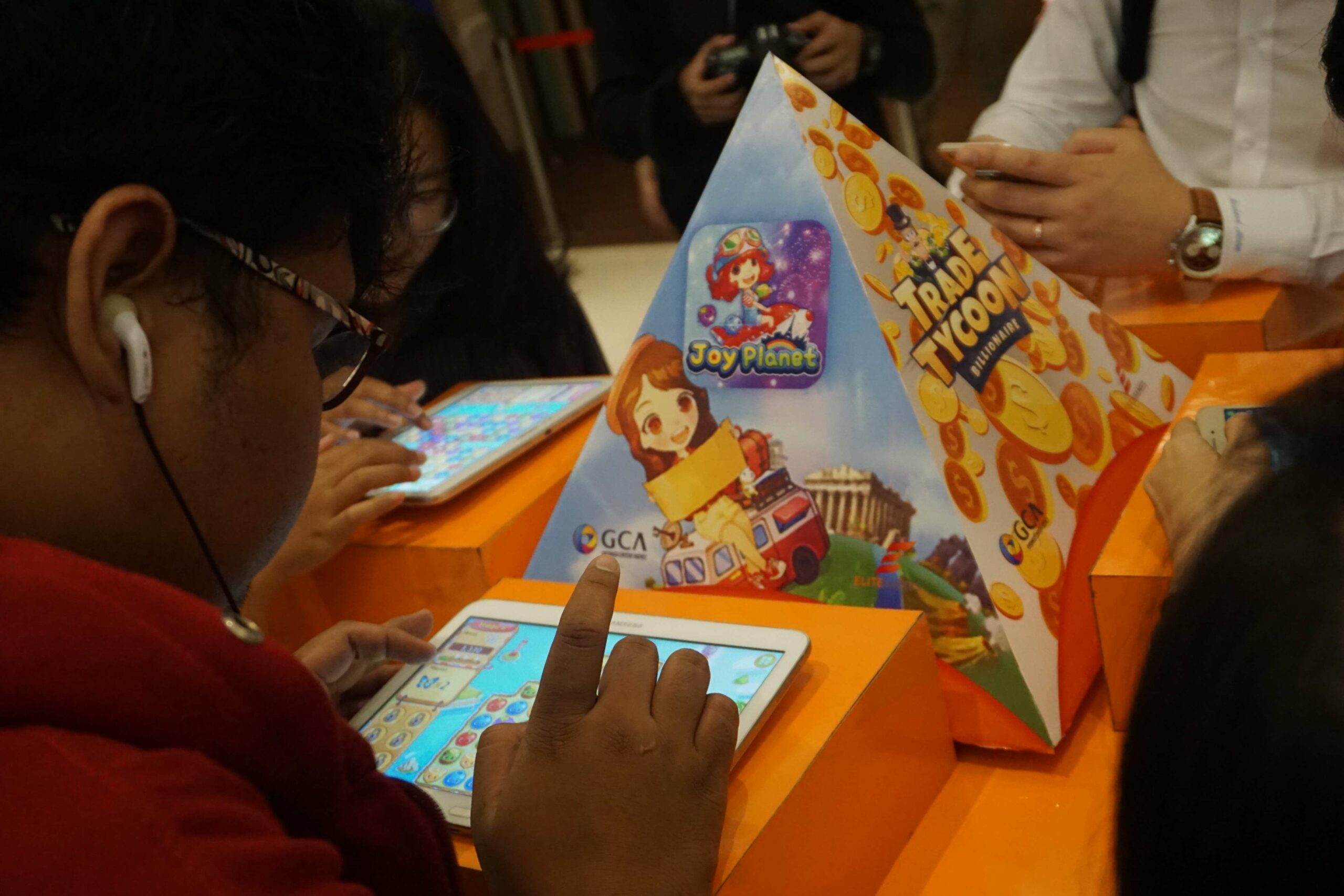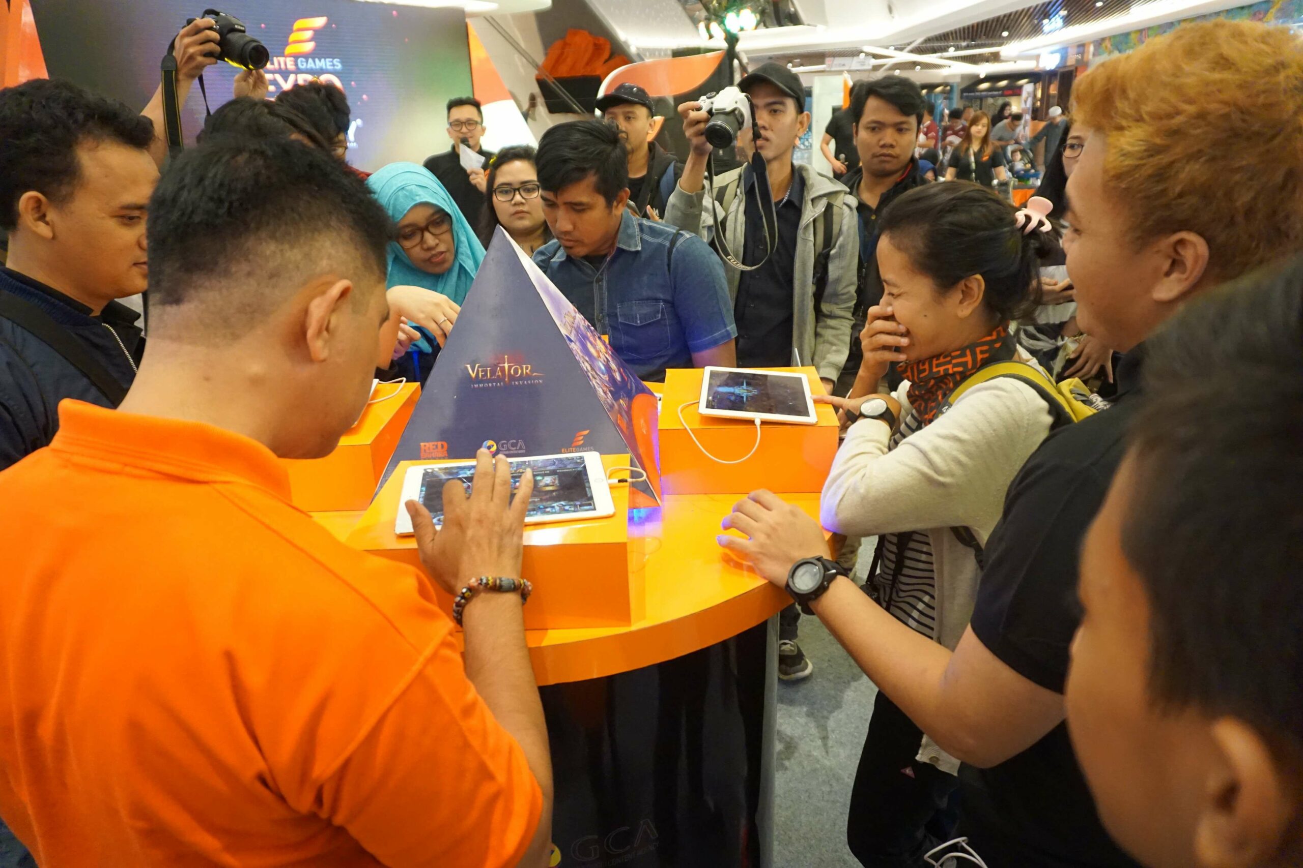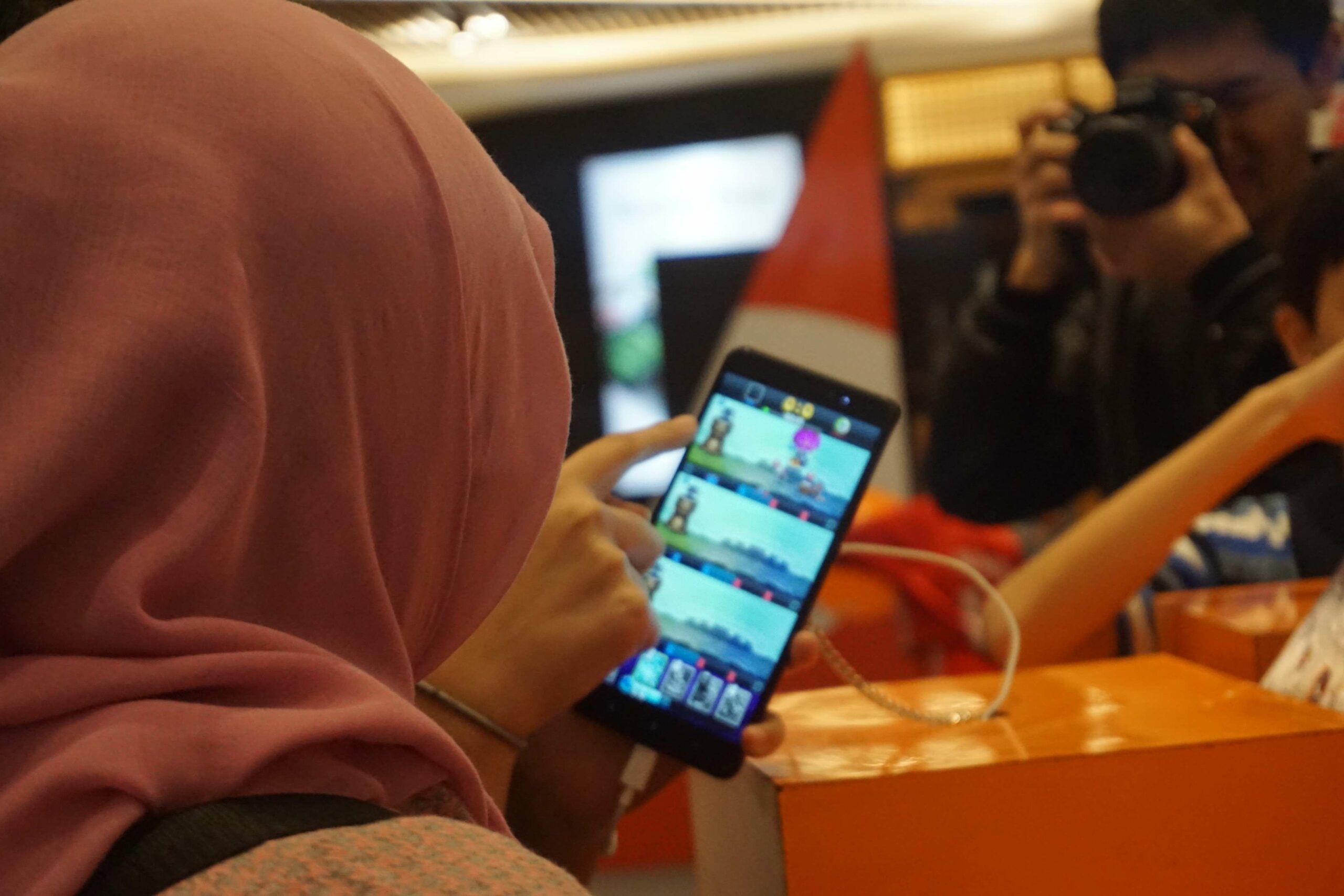 Para pengunjung yang hadir langsung bergegas mencoba berbagai mobile game yang berada di lokasi. Berikut ini beberapa momen yang berhasil staf KAORI Nusantara abadikan pada saat para pengunjung asik mencoba berbagai macam mobile game yang diluncurkan oleh Elite Games Inc.