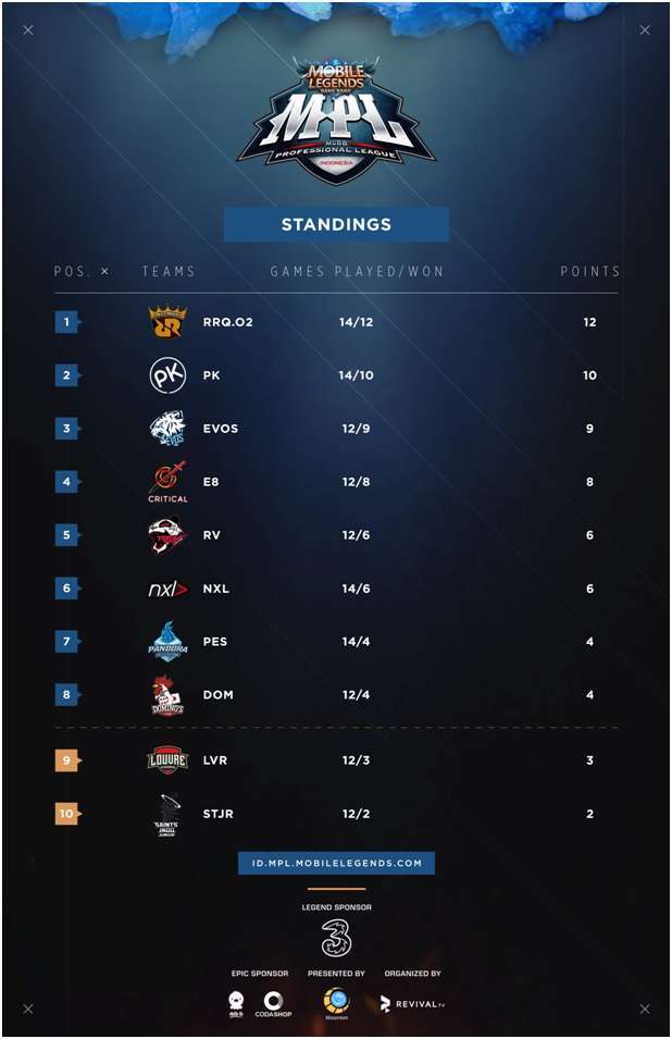 Delapan tim teratas di Regular Season MPL Season 1 ini juga nantinya akan diadu kembali di babak Playoff.