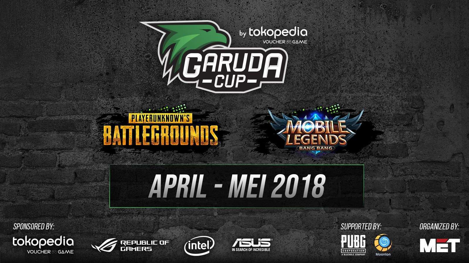 Kompetisi esport Indonesia semakin ramai dengan hadirnya Garuda Cup 2018 persembahan Tokopedia Voucher Game, Master Event Team (MET) dan ASUS Republic of Gamers (ROG). Garuda Cup merupakan turnamen berskala nasional yang menjadi ajang kolaborasi esport PC dengan mobile gamers bergengsi, melalui dua game populer di Indonesia yaitu PlayerUnknown’s Battleground (PUBG) dan Mobile Legends (ML).