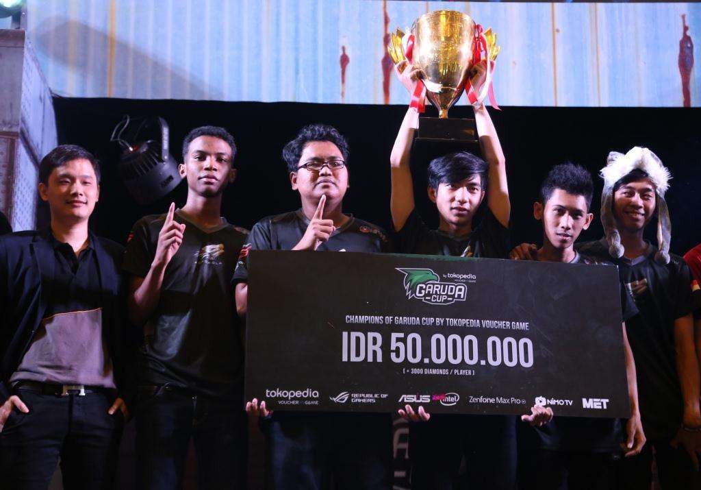 Berikut tim juara di Mobile Legends Championship Garuda Cup by Tokopedia Voucher Game 2018, posisi Runner Up disematkan kepada Louvre dengan hadiah sebesar Rp25 juta rupiah, diikuti oleh juara ke tiga yakni Evos Mobile Legend dan Revival.ID sebagai juara ke empat, masing-masing membawa pulang hadiah sebesar 7,5 juta rupiah. Sedangkan di posisi lima hingga delapan diduduki oleh RRQ, Team Agent, Elite8 Esports dan PG.Barracx.Superdog yang masing-masing squad juga tetap berhak membawa hadiah sebesar 2,5 juta rupiah.