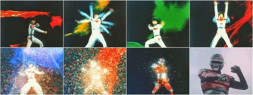 “Sekisha!” yang berarti “Cahaya Merah” adalah kata-kata yang diucapkan oleh Sharivan saat ia berubah, memanggil armor metaliknya yang berwarna merah, dengan kecepatan 1/1000 detik. Kecepatan berubahnya ini 50 kali lebih cepat dari Gavan, seniornya. Dengan kecepatan seperti itu, tentunya Sharivan memiliki gaya berubah yang berbeda, yang juga tidak kalah unik dari Gavan.