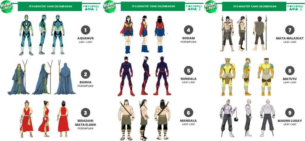 Semua ketentuan dan persyaratan, termasuk daftar karakter dan referensi kostum dari Bumi Langit yang dilombakan, bisa dilihat di sana.