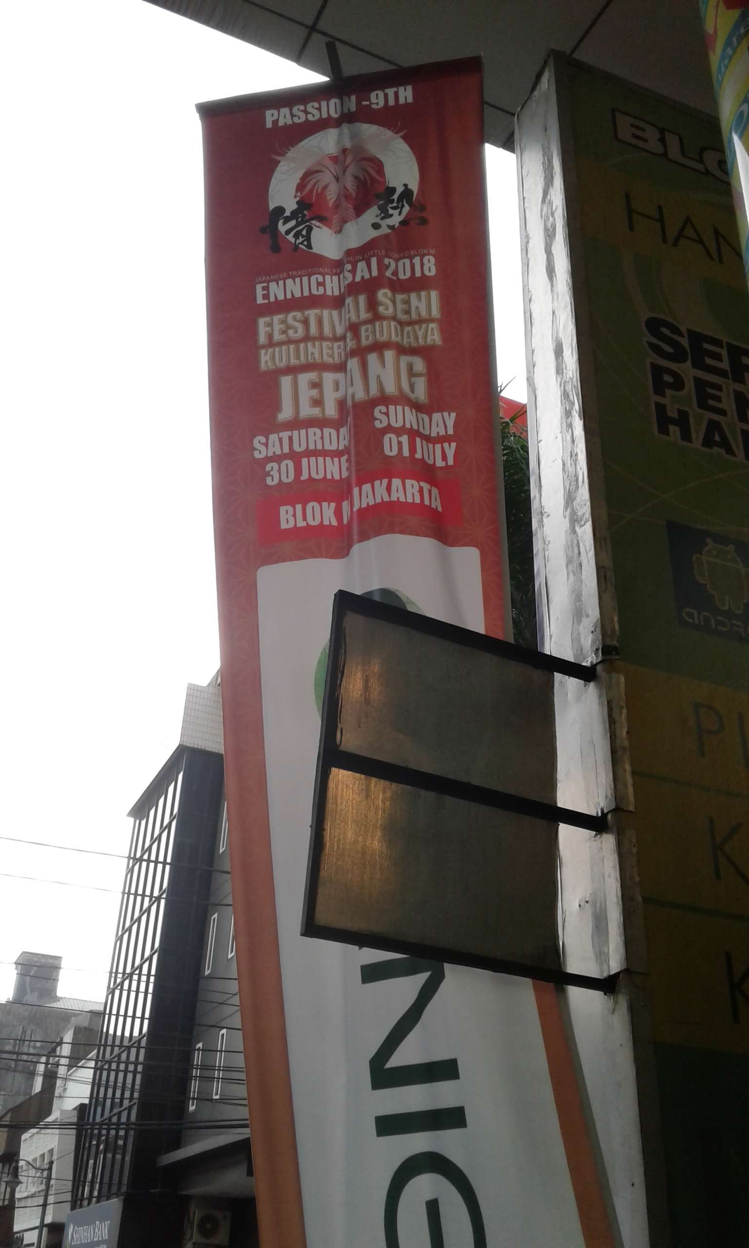 “Yang menarik, sejumlah poster promosi maupun buhul-buhul dari Ennichisai 2018 masih terlihat terpasang di sejumlah titik, ataupun sejumlah buhul-buhul yang tengah dibongkar. ”