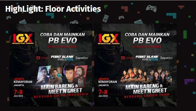 IGX 2018 tidak hanya diperuntukkan bagi gamer saja tapi juga non gamer, sehingga masyarakat umum dapat melihat langsung kegiatan IGX 2018 yang menghibur karena event ini dibuat dengan moto “There is always something for everyone”.