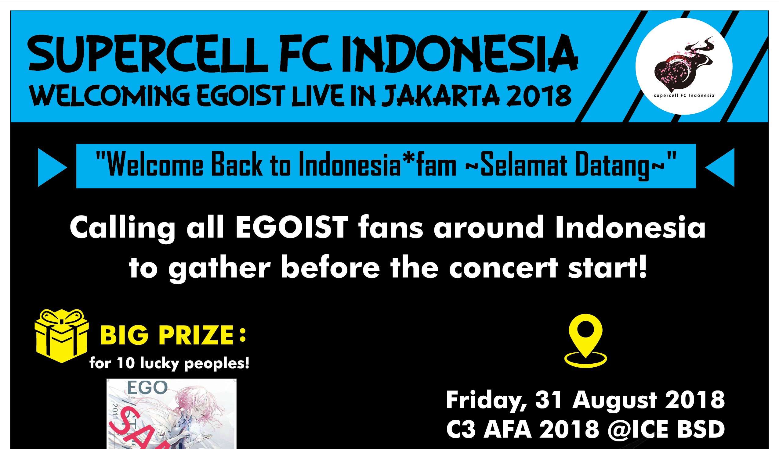 Mendengar kabar baik ini, komunitas penggemar supercell dan EGOIST di seluruh Indonesia bernama Supercell Indonesia berencana menyambut kedatangan EGOIST secara besar-besaran. Mereka mengajak seluruh fans EGOIST yang akan hadir ke konser di AFA untuk berkumpul dan menyatukan kekompakan terlebih dahulu pada sebuah gathering akbar sebelum konser EGOIST dimulai.