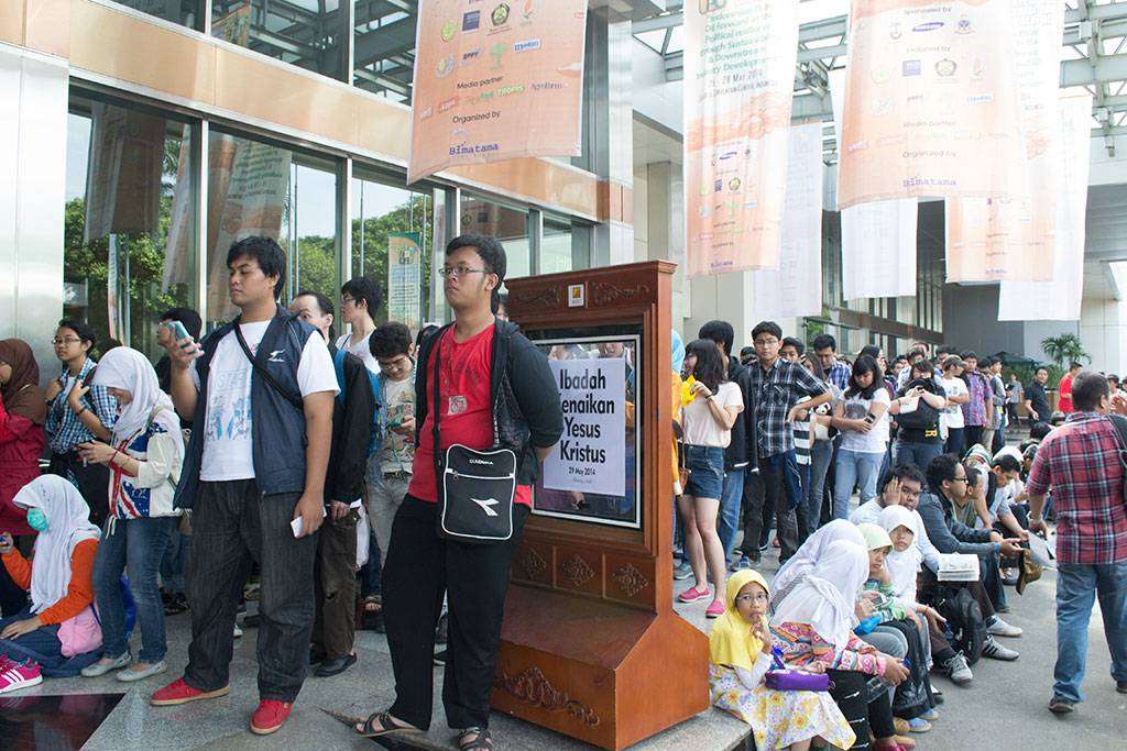 Keramaian antrian mulai berkurang bagi para pemegang tiket setengah jam kemudian, namun bagi pengunjung tanpa tiket, tetap dikuota dengan menunggu setiap setengah jam.