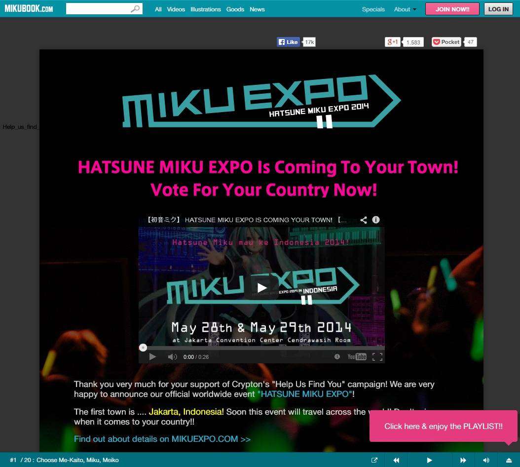 Kemudian, pada 27 Februari laman Facebook Hatsune Miku Expo di Indonesia pun resmi dibuka.