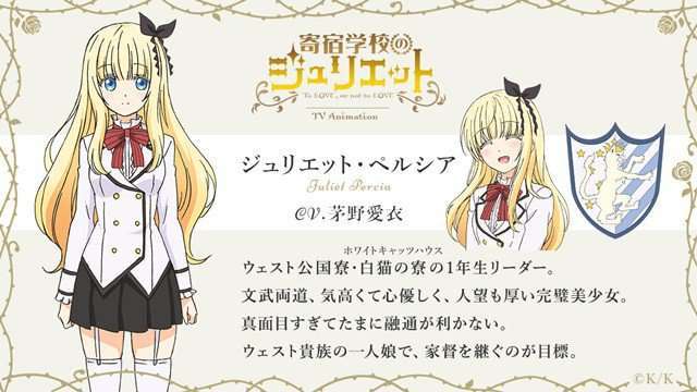 Ai Kayano sebagai Juliet Percia, siswi pemimpin asrama “Kucing Putih” mewakili Kerajaan West
