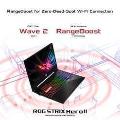 ROG Strix GL504 Hero II adalah laptop gaming pertama di dunia yang menampilkan Wi-Fi multi-antena untuk game online yang lebih stabil. Teknologi ROG RangeBoost yang dipatenkan menggunakan kombinasi dari empat antena yang ditemukan di bagian depan dan belakang laptop dengan algoritme unik yang secara konstan memindai dan memilih sepasang antena untuk koneksi yang lebih stabil, menghasilkan hingga 30% cakupan pengguna daripada konfigurasi dual-antena. Standar 802.11ac Wave 2 Wi-Fi terbaru memberikan kecepatan hingga 1.7Gbps – dua kali lipat dari 802.11ac 2×2 dan 12X lebih cepat dari 802.11b / g / n.