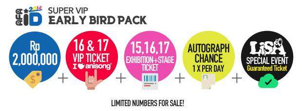 Bagi mereka yang tidak ingin membeli tiket harian, pihak SOZO juga telah menyediakan paket tiga hari, dengan harga Rp 800.000 untuk kelas GA dan Rp 1.600.000 untuk kelas VIP. Untuk yang ingin ikut serta dalam konser ekslusif LiSA, disediakan paket khusus (Super VIP Package) yang sudah termasuk tiket konser LiSA seharan Rp 2.000.000. Penjualan tiket sendiri akan dimulai tanggal 12 Juni untuk tiket Super VIP Package, dan 19 Juni untuk penjualan tiket lainnya. Penjualan keduanya akan dibuka mulai pukul 12 siang.
