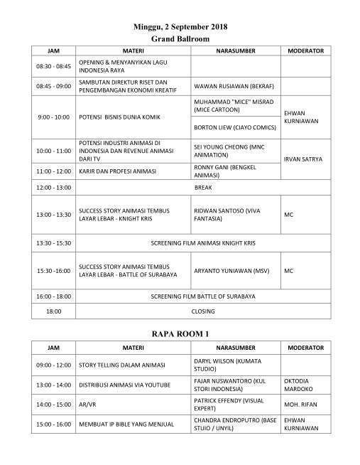 “Untuk meningkatkan industri kreatif dan ekonomi kreatif di bidang animasi dan menguji hasil dari penyusunan Grand Strategy sub sektor animasi dan melengkapi database yang berkaitan dengan animasi dari pendidikan dan industrinya dibutuhkan kegiatan yang berhubungan dengan promosi animasi Indonesia, “ujar Wakil Kepala Badan Ekonomi Kreatif, Ricky Joseph Pesik.
