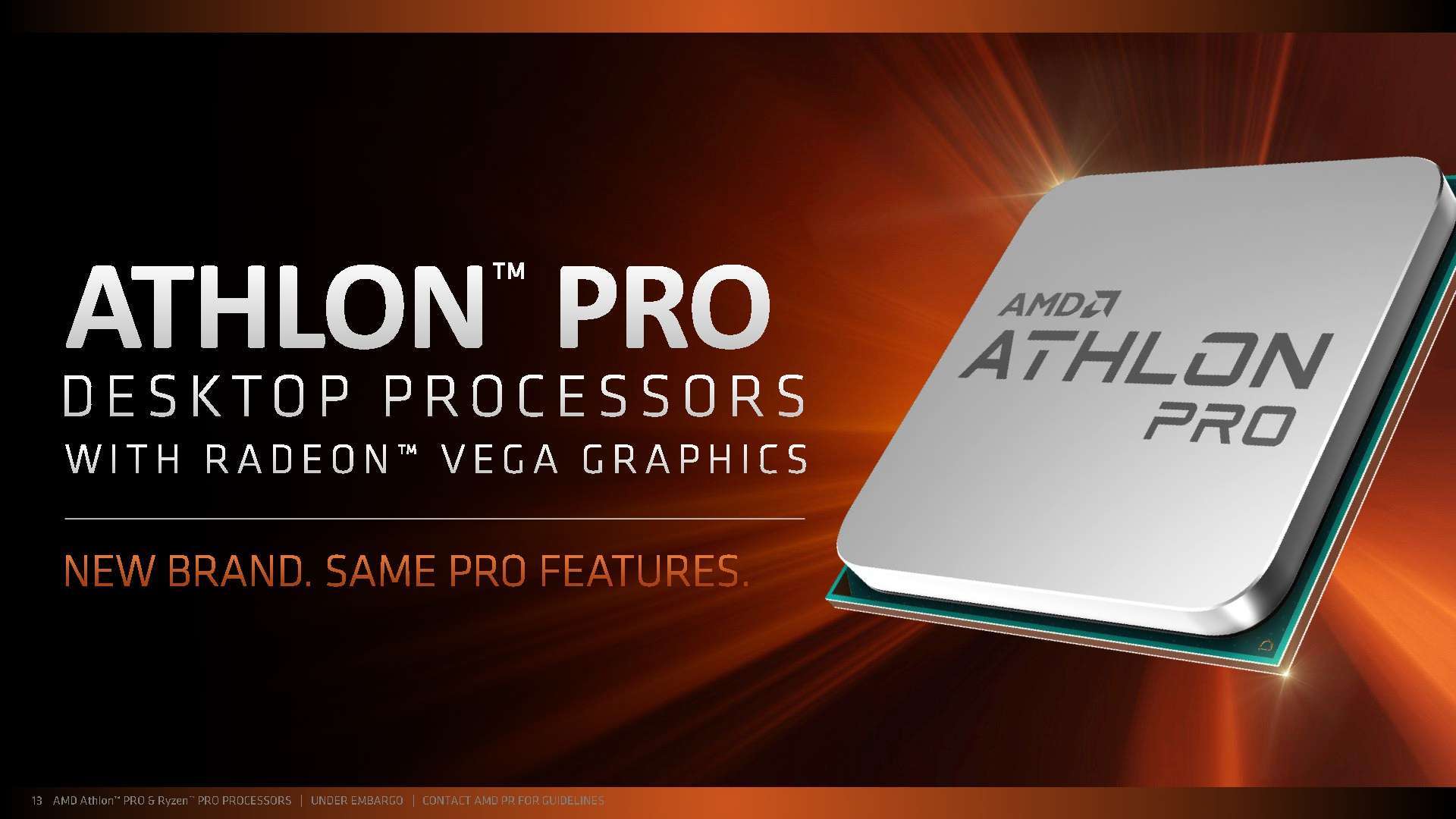 Pada 6 September 2018 lalu, mengumumkan sebuah pembaharuan dari keluarga prosesor dekstop AMD Athlon terintegrasi dengan grafis Radeon Vega yang sudah dioptimalkan bagi pengguna PC sehari-hari yaitu AMD Athlon 200GE, Athlon 220GE, dan Athlon 240GE. Menggabungkan arsitektur core x86“Zen”3 berperforma tinggi dan arsitektur pengolah grafis “Vega” pada sebuah desain System-on-Chip (SOC) serba guna, prosesor desktop Athlon menawarkan komputasi responsif dan andal untuk berbagai pengalaman, mulai dari kebutuhan sehari-hari seperti menjelajah web, dan streaming video, hingga pekerjaan yang lebih kompleks seperti bermain game PC dengan kualitas resolusi high-definition. Melengkapi kabar ini, AMD juga mengumumkan ketersediaan dari prosesor desktop kelas komersial Athlon PRO 200GE, bersama dengan tiga model prosesor desktop Ryzen PRO generasi kedua untuk sektor komersial, enterprise, dan publik: prosesor Ryzen 7 PRO 2700X, Ryzen 7 PRO 2700, dan Ryzen 5 PRO 2600. Dengan pengenalan produk-produk baru ini, AMD sekarang menawarkan jajaran solusi komputasi kelas profesional mulai dari kelas atas hingga bawah, untuk pengalaman content creation premium hingga multitasking tingkat atas dan produktivitas kantor.