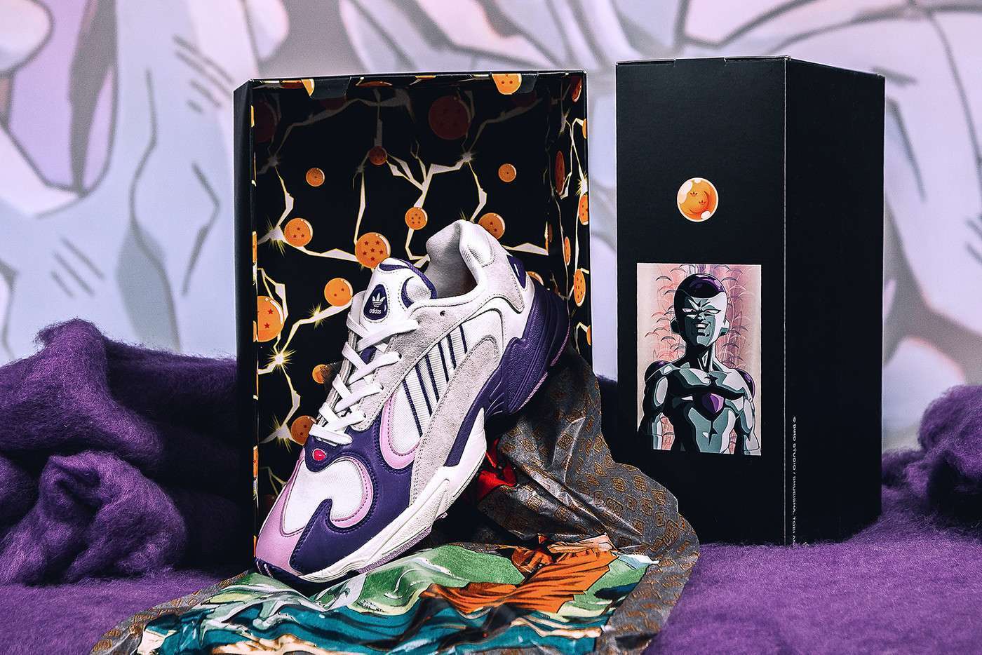 Sepatu kedua adalah Adidas Yung-1 yang didesain berdasarkan karakter Frieza. Sepatu ini berwarna dasar putih disertai dengan warna ungu yang memang menjadi warna khas dari karakter Frieza.